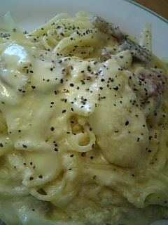 上の画像は今日の昼飯カルボナーラ